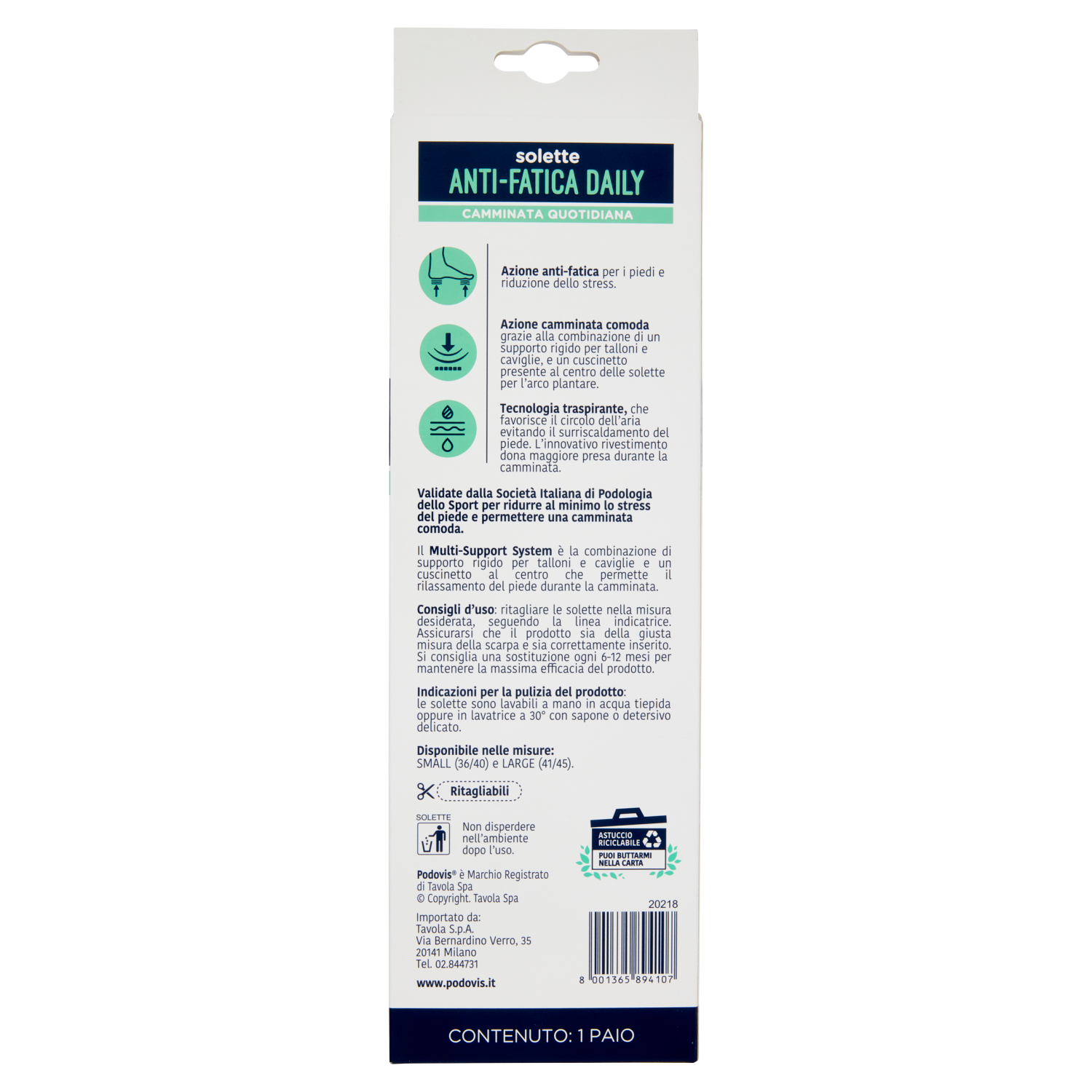 Description Podovis Comfort solette Anti-Fatica Daily L 41/45 1 Paio
